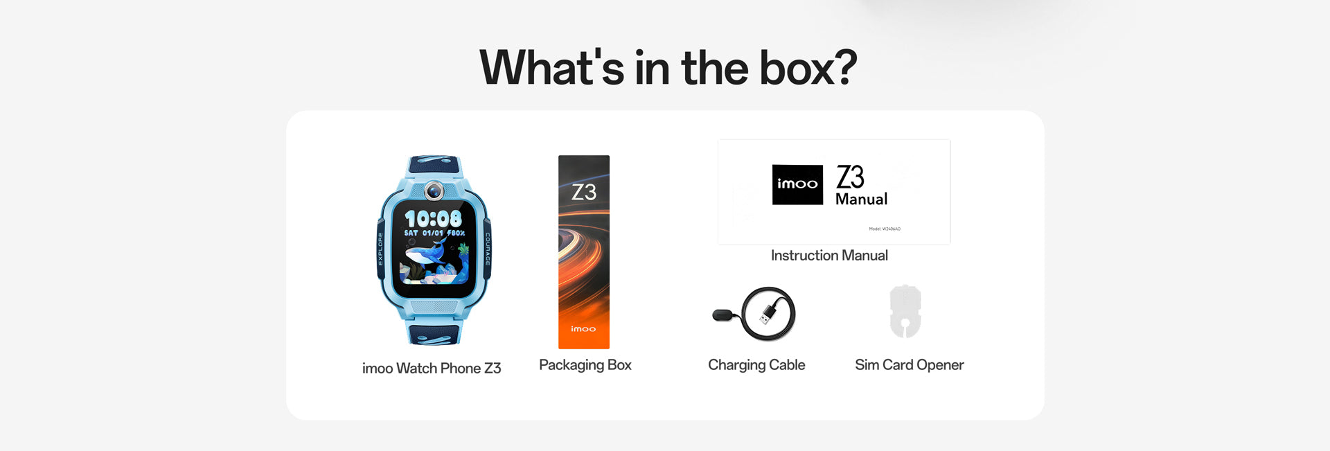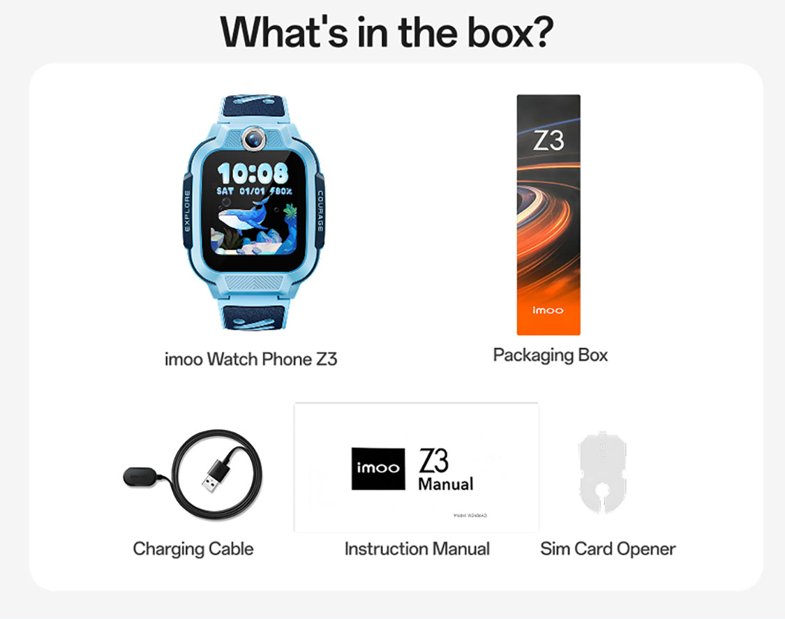 Watch Phone Z3, Charging Cable, Manual, SIM Card Picker