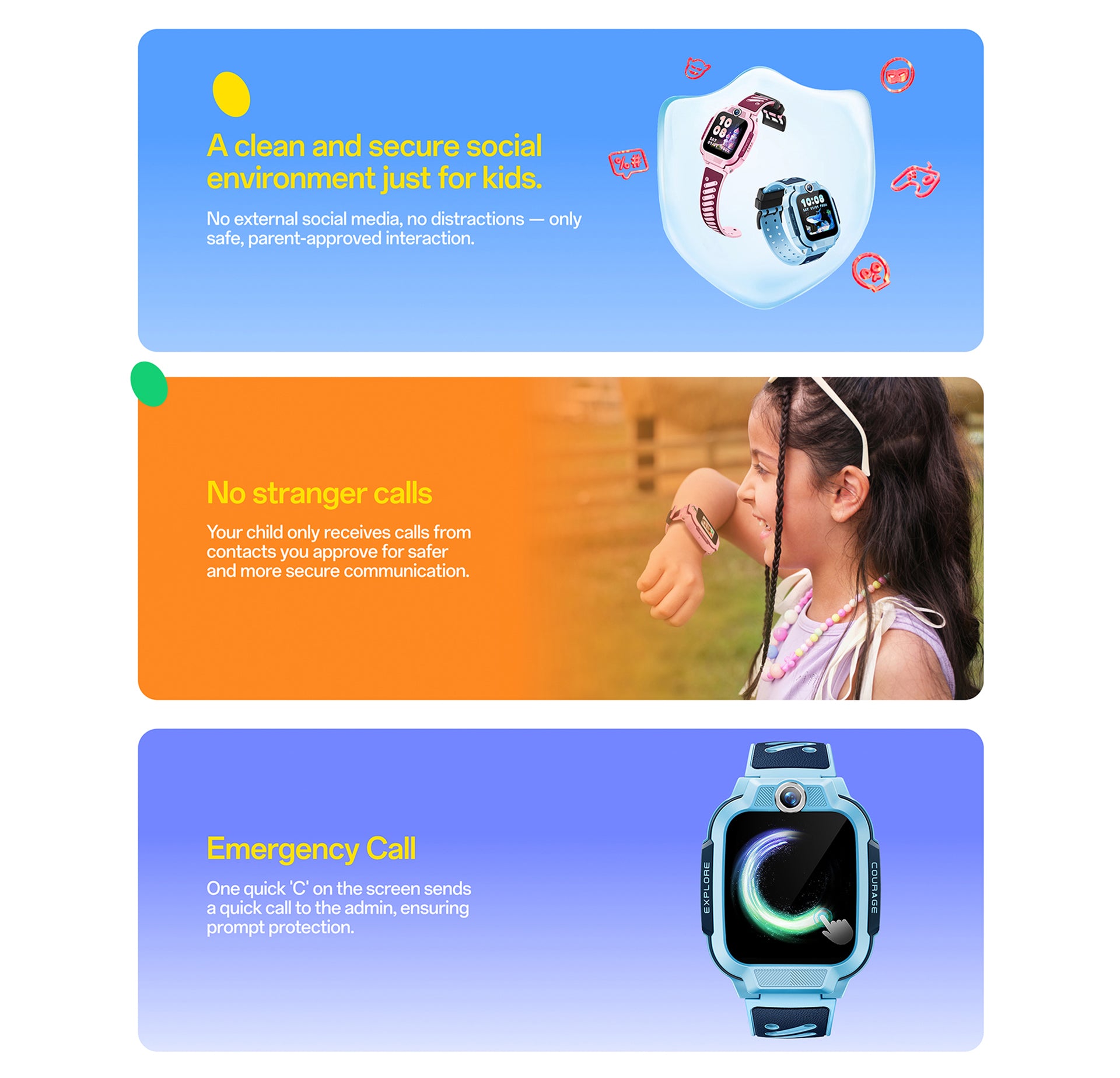 1. Accurate Location Tracking: GPS, GLONASS, Wi-Fi, and QZSS work together to provide real-time location tracking — whether your child is on campus or in a crowd.