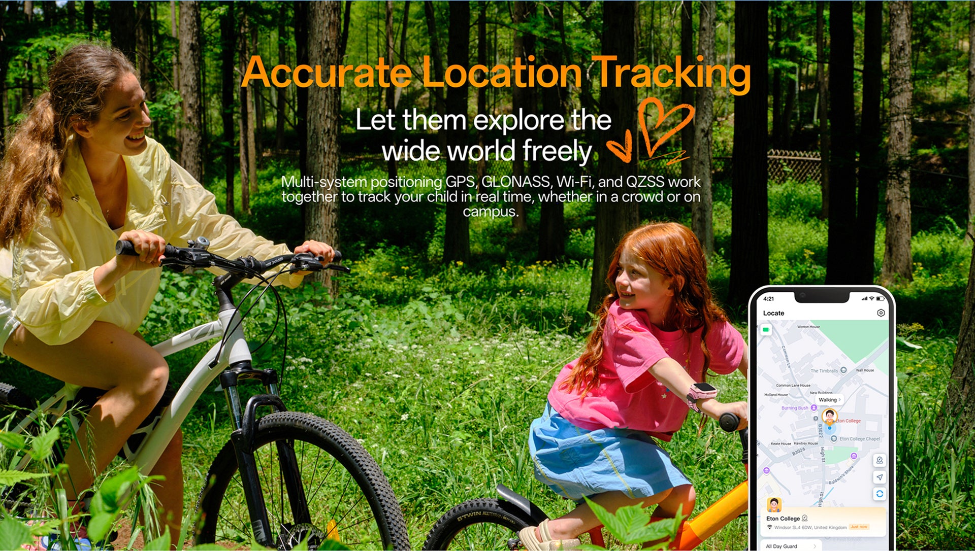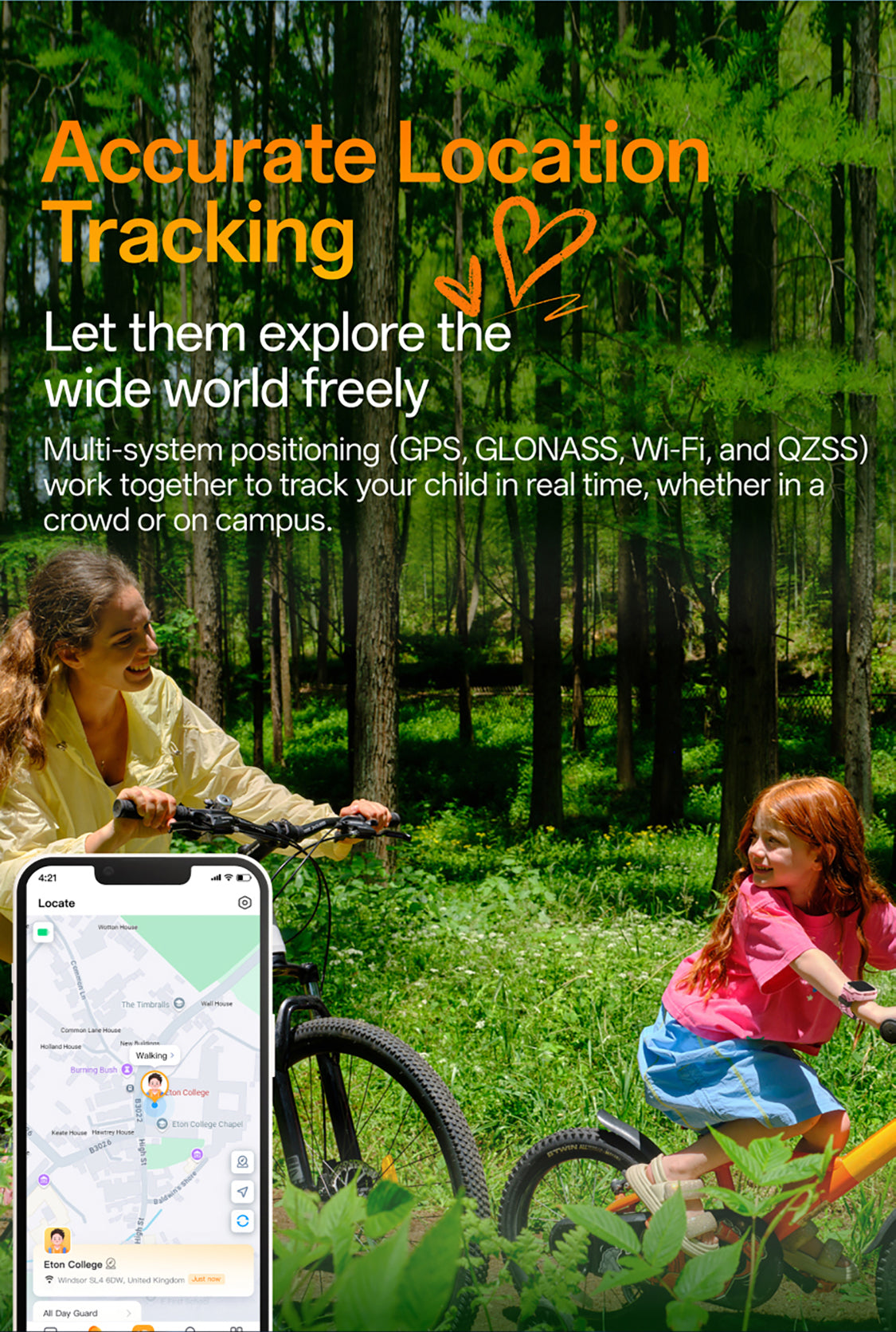 1. Accurate Location Tracking: GPS, GLONASS, Wi-Fi, and QZSS work together to provide real-time location tracking — whether your child is on campus or in a crowd.