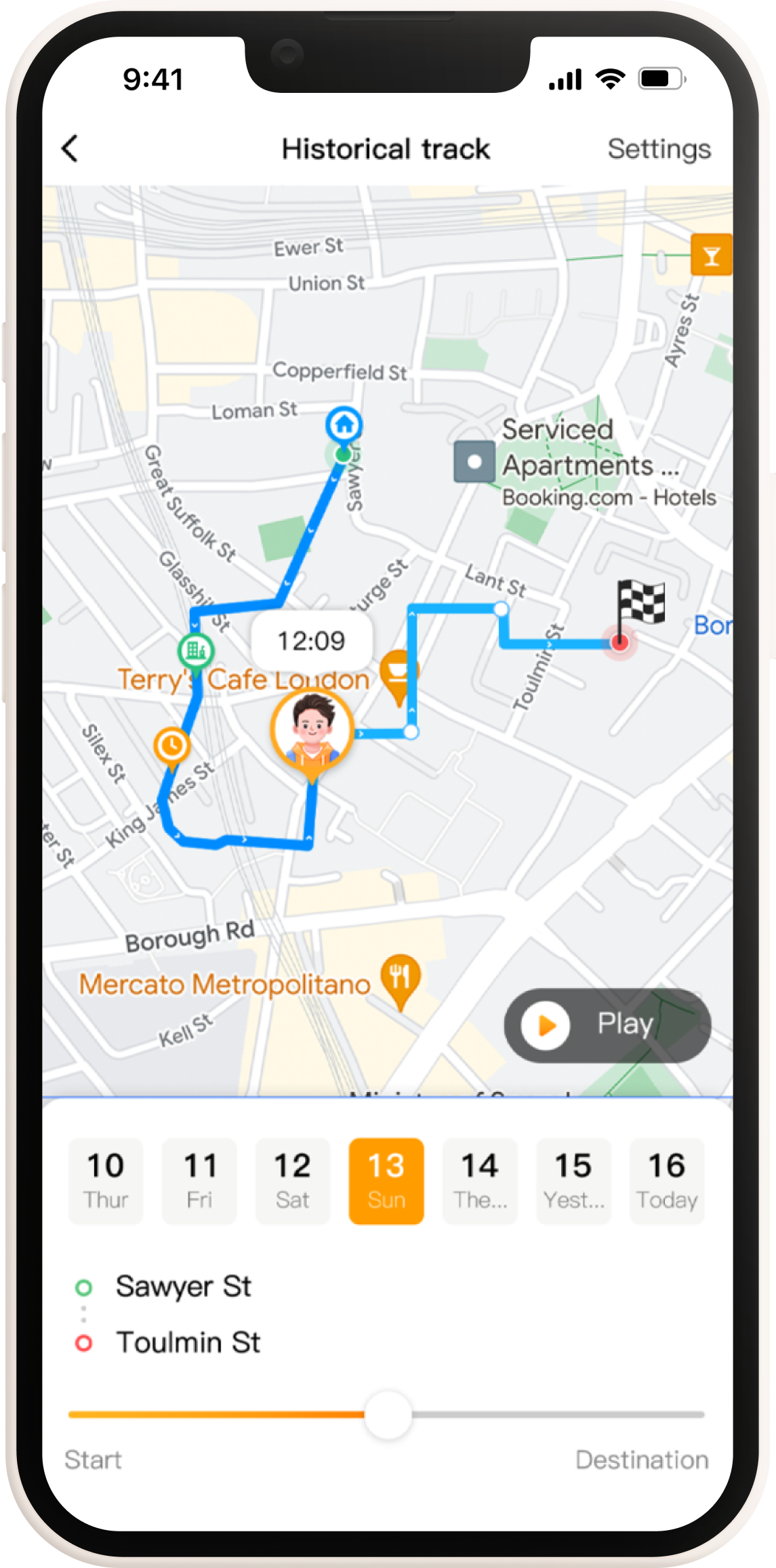 The watch records your kid's location as frequently as every 1-2 seconds to provide accurate traces of their daily movement. You can view details on where your kid has been in the past 14 days and how long they stayed in each place.