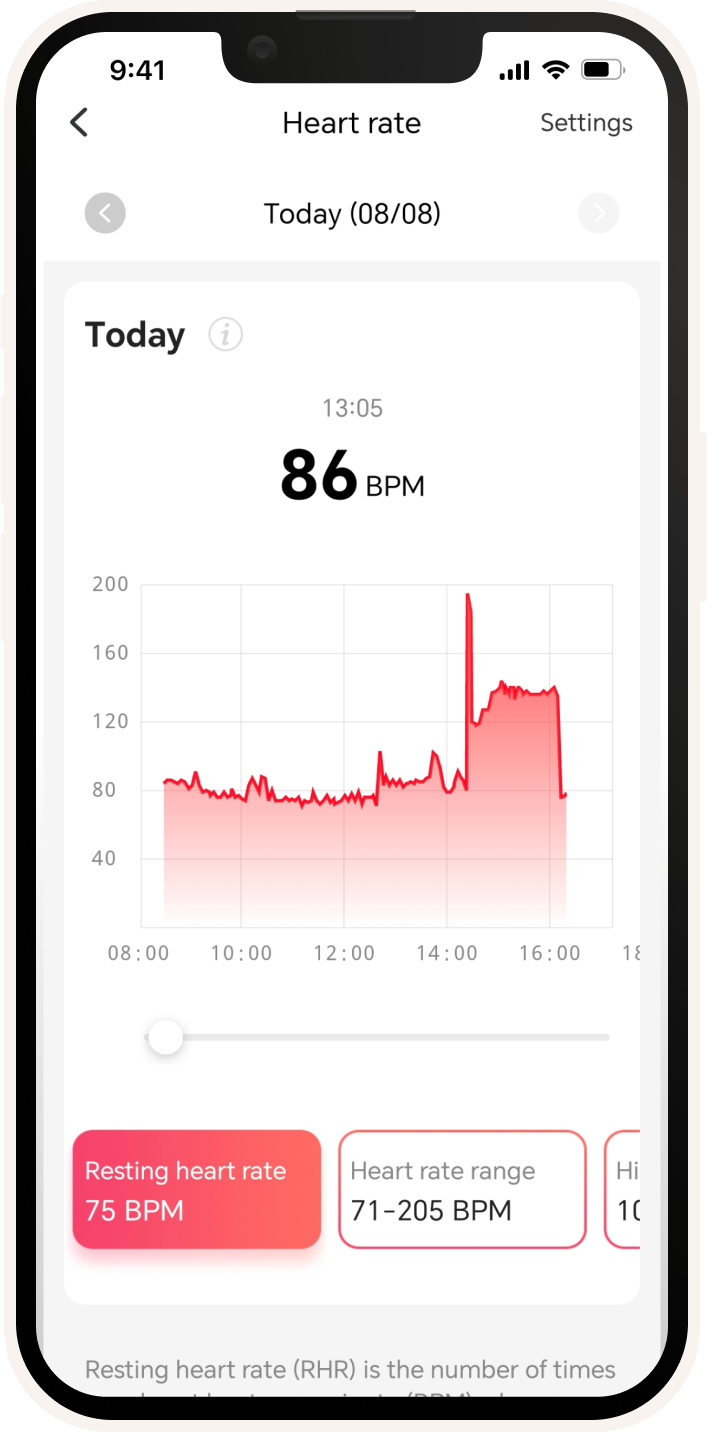 11. Heart Rate Monitoring: The PPG sensor measures the number of pulse waves at the wrist to estimate the user's heart rate. The measurement range is 60-240 BPM, with a measurement error of 3 BPM in a resting state.